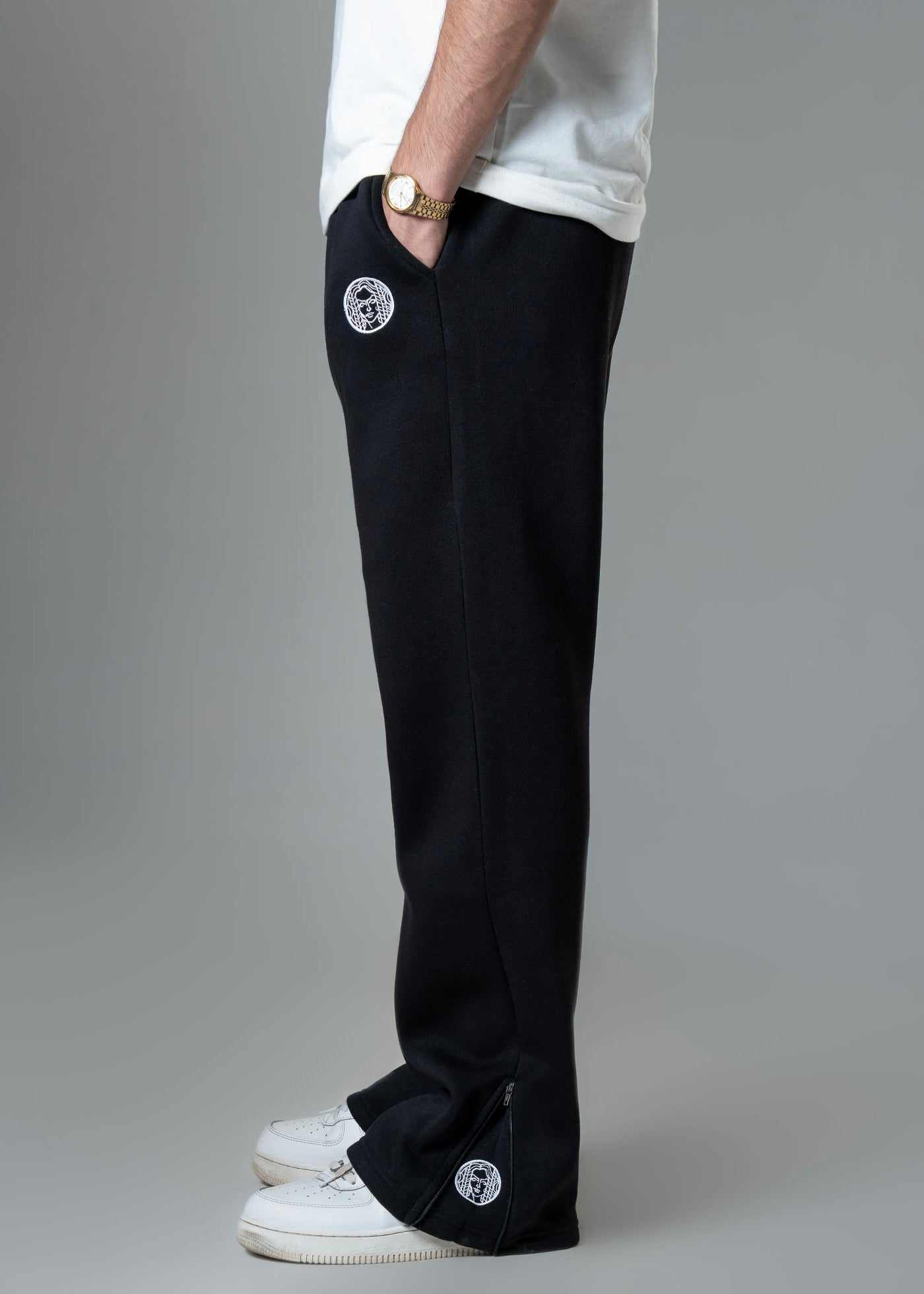 JET BLACK COLOR WITH SIGNATURE DRIP STUDIOS EMBROIDERY DETAILING FOR UNDERSTATED LUXURY.